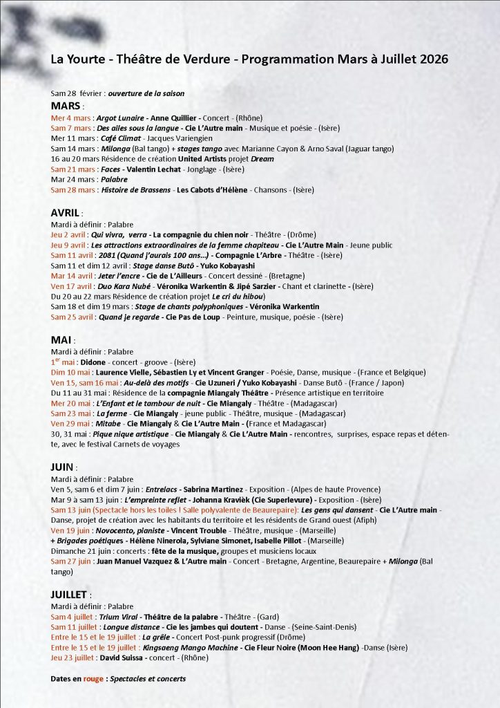 La yourte de la compagnie L’Autre Main est en résidence au Théâtre de Verdure du 1er mars au 31 août 2025.